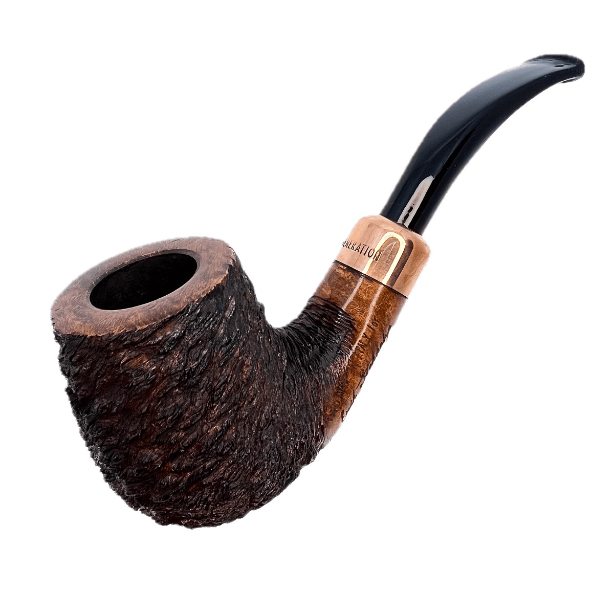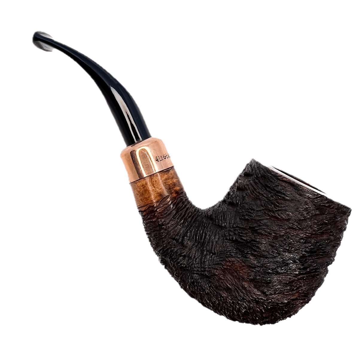 The 4th Generation bent Billiard, named after Erik Stokkebye’s 1855 blend honoring his great-grandfather’s birth year, reflects a timeless, natural design crafted by the Ascortis. Part of the Forza series, it showcases four distinctive finishes — Nebbiolo (auburn sandblast), Fiano (honey-auburn smooth), Grappa (dark rustication), and Primitivo (wire-brushed rustication) — all accented with sleek metallic trim.
