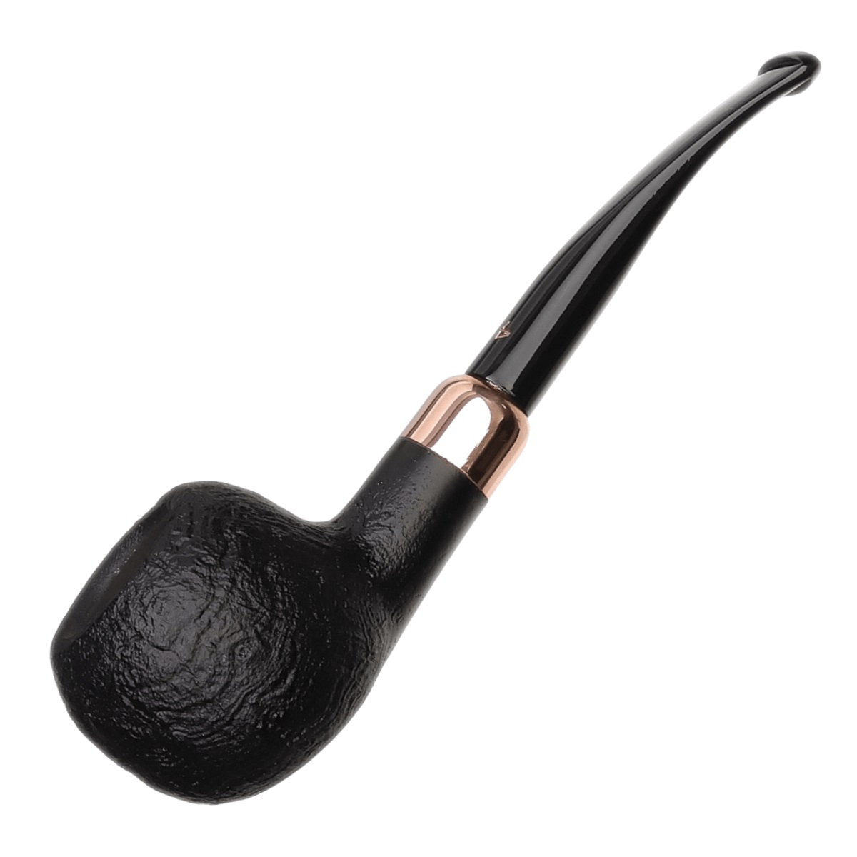 Founded in 2012, Erik Stokkebye 4th Generation offers pipes and tobaccos inspired by family heritage. The Klassisk line, meaning “Classic” in Danish, features timeless shapes in two finishes: a rich auburn stain or deep sandblast, both in the Anglo-French style. Each pipe is accented with a warm copper shank mount and paired with a black acrylic stem. This “406” bent Apple, in sandblast, blends tradition and elegance for a refined smoking experience.