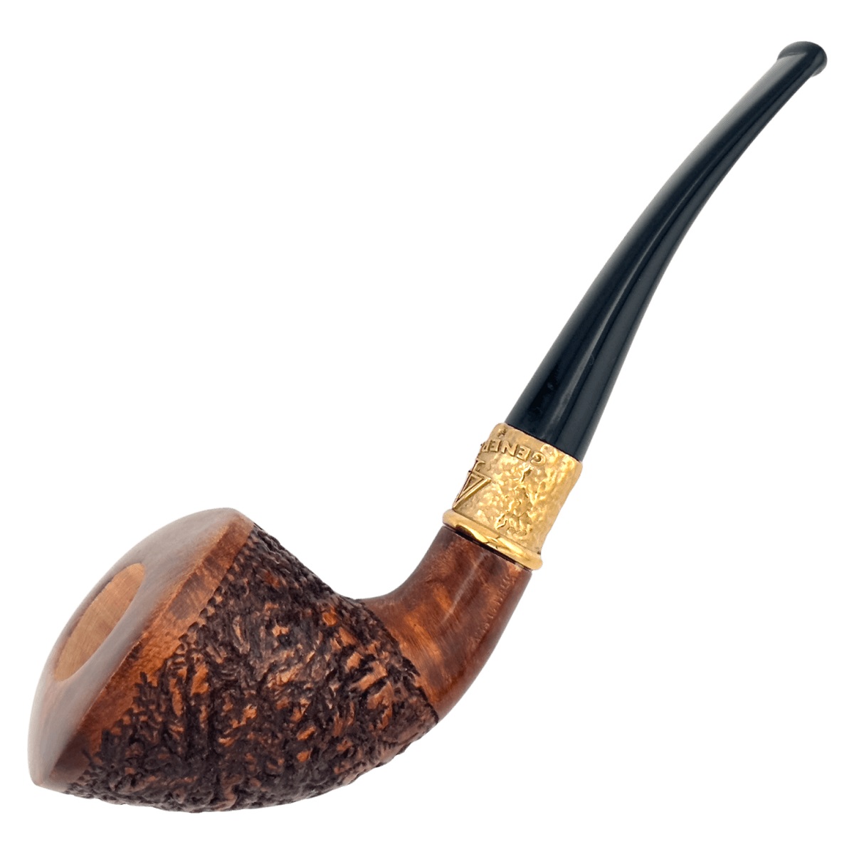 Founded in 2012, Erik Stokkebye 4th Generation crafts pipes and tobaccos that honor the Stokkebye family’s legacy. The Winter Collection, the second in a four-part seasonal series, showcases refined craftsmanship. Each pipe features a mahogany-hued partial rustication with a bronze band, blending tradition and elegance. This oval bent Dublin highlights the collection’s sophistication, with its distinguished finish and graceful shaping.
