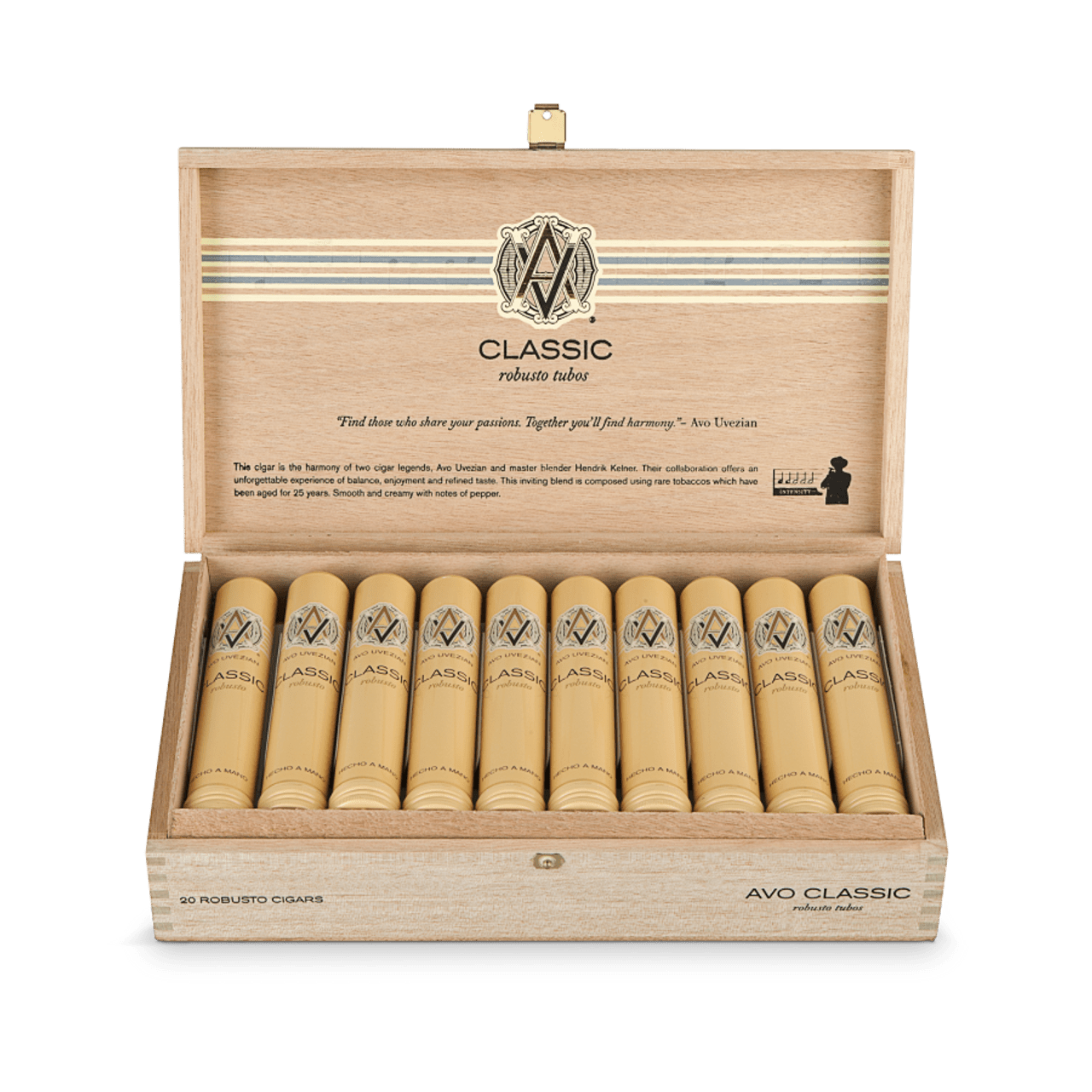 This cigar is the harmony of two cigar legends, Avo Uvezian and Master Blender Hendrik Kelner. Their collaboration offers an unforgettable experience of balance, enjoyment and refined taste. This inviting blend is composed using rare tobaccos that have been aged for 25 years.