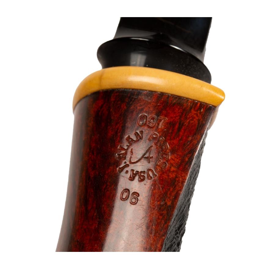 Description: Item/Description: American estate pipe by J. Alan. Smooth and sandblasted finish. Stamped: J. Alan Pipes / 097 / 06 / U.S.A.