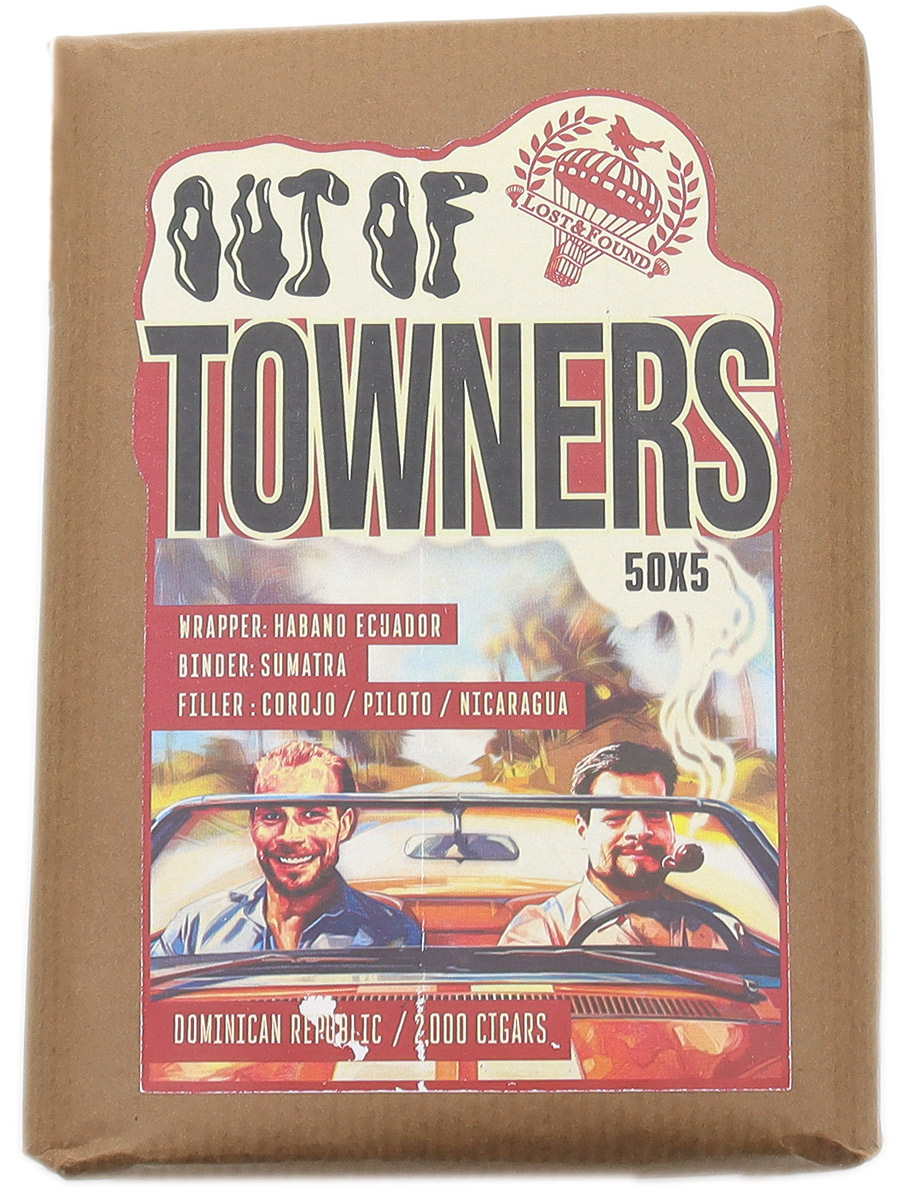 In 2022, Lost & Found announced that they would also be offering cigars that have been specially commissioned from factories and intentionally aged prior to release. The Out of Towners is one such cigar, being made at Tabacalera Mina del Rey. It features an Ecuadorian Habano wrapper, a Sumatra binder, and a filler blend of Corojo, Nicaraguan, and Piloto leaf.