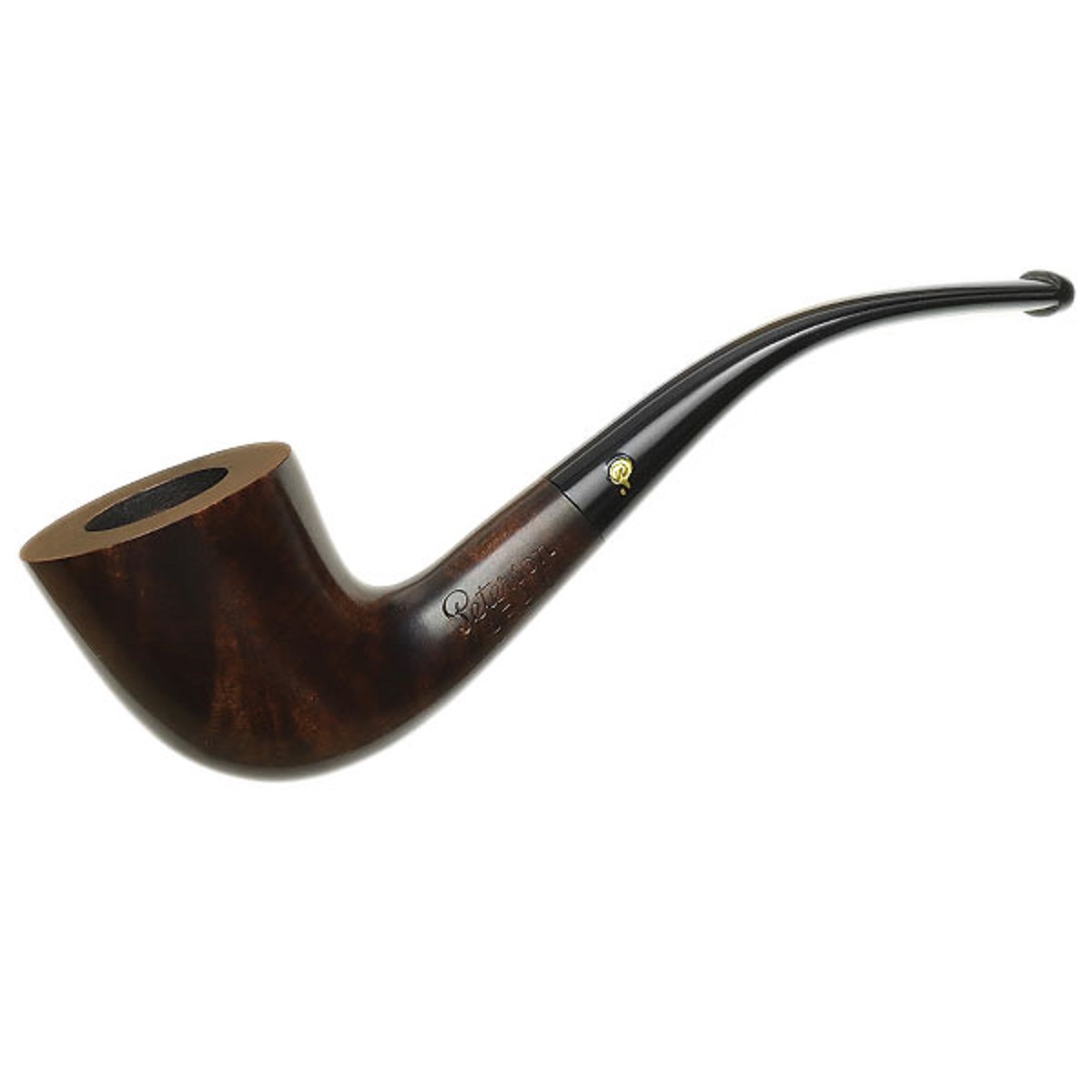Peterson’s signature aesthetic is known for its muscular, robust style, emphasizing the shank and transition. The “D” shapes, introduced in 1996, offer a more slender, elegantly curved design, with the “129” (formerly “D6”) blending Horn and Bent Dublin profiles. The Aran finish features a smooth, chocolate stain and jet-black stem, highlighting the briar’s grain while maintaining elegance.