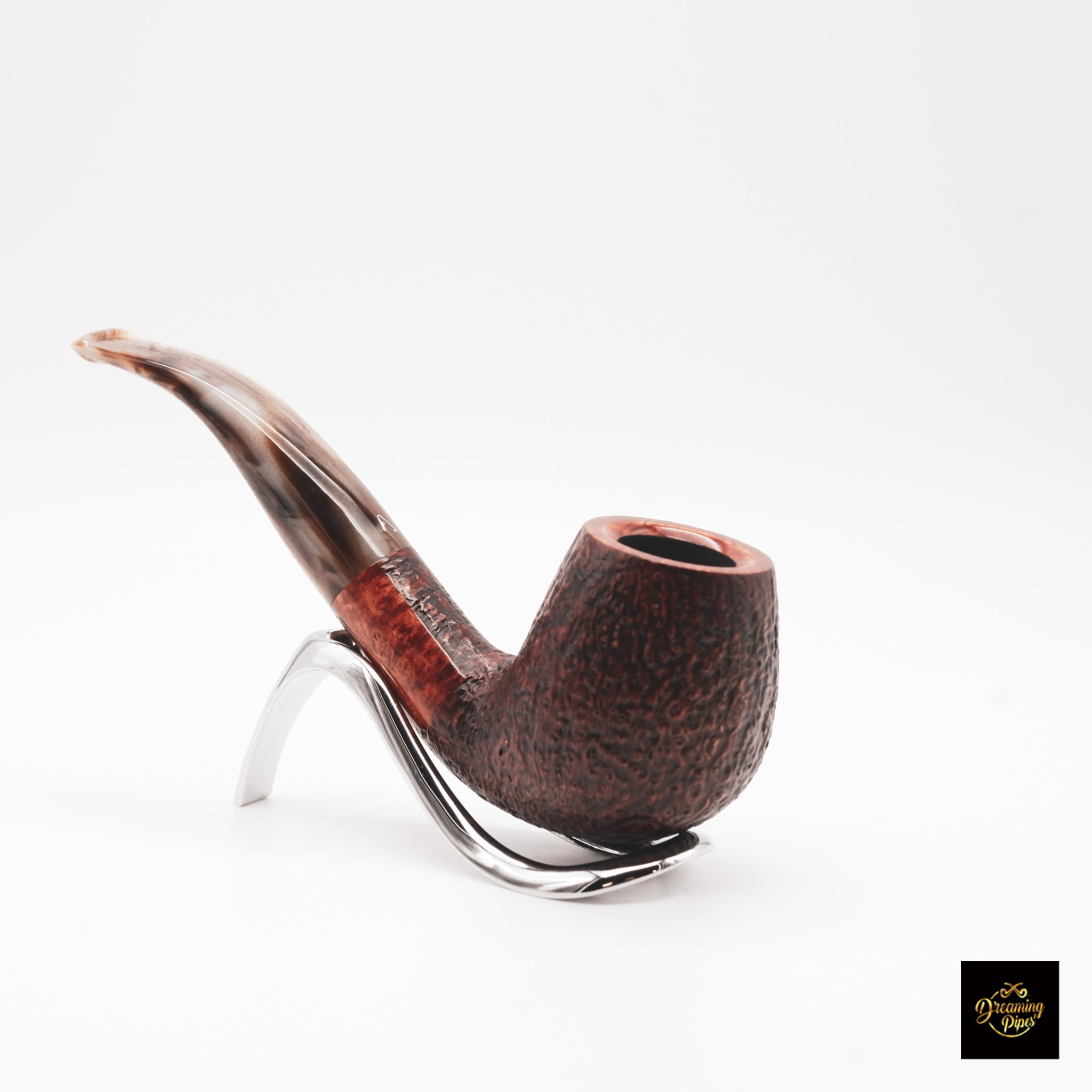The Ascorti Italia Sand Tredici is a masterfully crafted pipe that embodies the elegance of Italian design. Featuring a sandblasted finish, the bowl showcases the natural beauty and grain of the briar, while the smooth rim adds a refined touch. The pipe’s striking, curved acrylic stem displays a beautiful marbled pattern, providing a light, airy contrast to the deep brown tones of the bowl. Ergonomically designed for a comfortable grip, this pipe is both a work of art and a practical smoking tool, making it an excellent choice for collectors and aficionados alike.