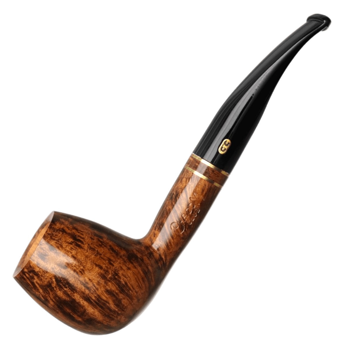 This smooth bent Brandy pipe from Chacom features a long transition and a gracefully lifted bowl. Finished in the elegant Club style, it showcases a warm, high-contrast stain that highlights the natural grain and enhances the shape’s flowing lines, creating a refined and visually appealing design.